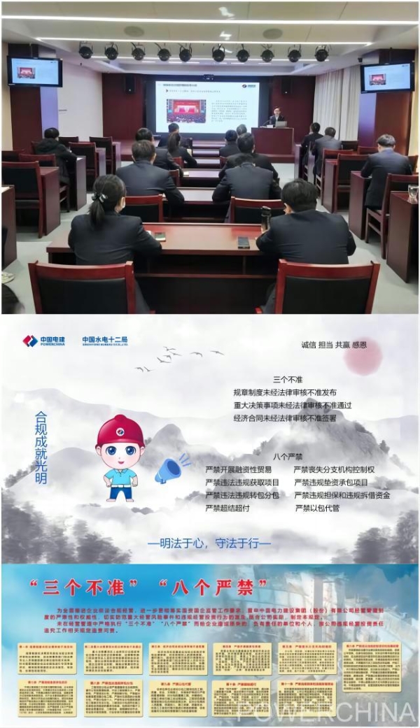 2023年(nian)12月4日(ri),是我国(guo)现行宪(xian)(xian)法(fa)颁布实施的第四十(shi)(shi)(shi)一(yi)周(zhou)年(nian),同(tong)时也是第十(shi)(shi)(shi)个“国(guo)家宪(xian)(xian)法(fa)日(ri)”,为进(jin)(jin)一(yi)步学习领会习近平新时代中国(guo)特色社(she)(she)会主义思(si)想,全面贯彻(che)党的二十(shi)(shi)(shi)大精神(shen),弘扬(yang)宪(xian)(xian)法(fa)精神(shen),深入贯彻(che)落(luo)实《关于开(kai)展2023年(nian)宪(xian)(xian)法(fa)宣(xuan)传周(zhou)暨普法(fa)宣(xuan)传活(huo)(huo)动(dong)的通知(zhi)》(法(fa)管〔2023〕22号(hao))文(wen)件要求(qiu),主动(dong)促进(jin)(jin)“业法(fa)融合”,水电十(shi)(shi)(shi)二局(ju)在全公司开(kai)展了为期25天(12月1日(ri)至12月25日(ri))的以“大力弘扬(yang)宪(xian)(xian)法(fa)精神(shen),建设社(she)(she)会主义法(fa)治(zhi)文(wen)化”为主题的法(fa)治(zhi)文(wen)化宣(xuan)传活(huo)(huo)动(dong),取得(de)了良好的宣(xuan)传教(jiao)育效果。 一、紧盯重点,多措并举,确保(bao)职工将“三个不准、八个严(yan)禁(jin)”要求(qiu)摆上案头(tou)、刻在(zai)心上。 为进一步营造(zao)高质(zhi)量(liang)的法(fa)治环(huan)境,构建(jian)高质(zhi)量(liang)的企(qi)业(ye)管(guan)理环(huan)境,水电十二局将“三个(ge)不准、八个(ge)严(yan)禁(jin)”要(yao)求列为法(fa)治宣(xuan)传重点(dian),通过组(zu)织开展“学习大(da)讲堂(tang)”、法(fa)治橱窗、张贴宣(xuan)传海报(bao)、制作宣(xuan)传制品等方式进行宣(xuan)传,确保职(zhi)工树牢底线思维、红线意识,真正将“三个(ge)不准、八个(ge)严(yan)禁(jin)”要(yao)求摆上(shang)(shang)案(an)头、刻(ke)在(zai)心(xin)上(shang)(shang)。 二、培(pei)优亮点,守正创新,打造具有公司特色的法治文化宣传精品。 普(pu)法(fa)(fa)宣传(chuan)期(qi)间,水(shui)电十(shi)二(er)局结(jie)合(he)公(gong)(gong)司实践组织开(kai)展(zhan)法(fa)(fa)律(lv)知识“码”上(shang)(shang)学(xue)(xue)活动(第一(yi)期(qi)),内(nei)容(rong)包(bao)(bao)括(kuo)法(fa)(fa)规(gui)(gui)速递、吉娃说法(fa)(fa)、以案(an)(an)(an)释(shi)法(fa)(fa)、融法(fa)(fa)微课(ke)、合(he)规(gui)(gui)学(xue)(xue)堂和成果测试6个模(mo)(mo)(mo)块。【法(fa)(fa)规(gui)(gui)速递】模(mo)(mo)(mo)块整(zheng)理(li)与(yu)水(shui)电十(shi)二(er)局生(sheng)产(chan)经营密切(qie)相关(guan)的(de)(de)法(fa)(fa)律(lv)法(fa)(fa)规(gui)(gui),包(bao)(bao)括(kuo)最近印发(fa)的(de)(de)《领导干部(bu)应知应会法(fa)(fa)律(lv)清(qing)单》《三个不准 八个严禁》等文件(jian)(jian);【吉娃说法(fa)(fa)】模(mo)(mo)(mo)块是水(shui)电十(shi)二(er)局以电建吉娃为元素自行创作(zuo)的(de)(de)宣传(chuan)海(hai)报,供(gong)各(ge)(ge)单位、项(xiang)目(mu)部(bu)在(zai)开(kai)展(zhan)法(fa)(fa)治宣传(chuan)活动时(shi)使用。【以案(an)(an)(an)释(shi)法(fa)(fa)】模(mo)(mo)(mo)块则整(zheng)理(li)了最高人(ren)民法(fa)(fa)院发(fa)布的(de)(de)38批、200多个纠(jiu)(jiu)纷指导案(an)(an)(an)例(li)(li),同时(shi)按照工(gong)作(zuo)阶(jie)段(duan)整(zheng)理(li)典型纠(jiu)(jiu)纷案(an)(an)(an)例(li)(li),可(ke)以作(zuo)为普(pu)法(fa)(fa)的(de)(de)素材,也(ye)可(ke)供(gong)相应岗位人(ren)员阅读,吸(xi)取案(an)(an)(an)件(jian)(jian)教(jiao)训(xun)。【融法(fa)(fa)微课(ke)】模(mo)(mo)(mo)块,水(shui)电十(shi)二(er)局将部(bu)分适宜(yi)公(gong)(gong)开(kai)发(fa)布、与(yu)项(xiang)目(mu)紧密相关(guan)的(de)(de)课(ke)件(jian)(jian)进行了整(zheng)理(li),便于所属各(ge)(ge)单位总法(fa)(fa)律(lv)顾问到(dao)项(xiang)目(mu)检查工(gong)作(zuo)时(shi),宣讲法(fa)(fa)律(lv)风险点(dian)。【合(he)规(gui)(gui)学(xue)(xue)堂】模(mo)(mo)(mo)块包(bao)(bao)括(kuo)新(xin)(xin)员工(gong)合(he)规(gui)(gui)手册、最高人(ren)民检察(cha)院涉(she)案(an)(an)(an)企业合(he)规(gui)(gui)典型案(an)(an)(an)例(li)(li)汇编(bian)。【成果测试】模(mo)(mo)(mo)块包(bao)(bao)括(kuo)20道选择题,供(gong)大(da)家在(zai)学(xue)(xue)习后小(xiao)试牛刀。经调研(yan),此次(ci)“码”上(shang)(shang)学(xue)(xue)(第一(yi)期(qi))活动目(mu)前参(can)与(yu)人(ren)数众多,在(zai)创新(xin)(xin)普(pu)法(fa)(fa)形式的(de)(de)同时(shi)极大(da)提升普(pu)法(fa)(fa)效率。接下来,水(shui)电十(shi)二(er)局将继续结(jie)合(he)实践,以“码”上(shang)(shang)学(xue)(xue)活动为切(qie)入点(dian),不断创新(xin)(xin),形成亮(liang)点(dian)突出、影响力大(da)的(de)(de)具有公(gong)(gong)司特色的(de)(de)法(fa)(fa)治文化宣传(chuan)精品。 三(san)、聚焦节点,立足实(shi)际,打磨符合公司实(shi)践的“法(fa)律三(san)进”普法(fa)活动。 “法(fa)(fa)(fa)(fa)律(lv)(lv)进(jin)公司”,为进(jin)一(yi)(yi)步(bu)(bu)发挥法(fa)(fa)(fa)(fa)律(lv)(lv)服(fu)务保(bao)障职能(neng),提升企业(ye)防(fang)范化解(jie)风(feng)险能(neng)力,水电十二(er)局(ju)(ju)动员(yuan)公司律(lv)(lv)师和(he)(he)(he)法(fa)(fa)(fa)(fa)律(lv)(lv)工作者(zhe)组(zu)成“法(fa)(fa)(fa)(fa)律(lv)(lv)咨询”团,以(yi)座谈会的形式了(le)(le)解(jie)大(da)家的需求和(he)(he)(he)困惑,并及时(shi)(shi)为大(da)家提供优质(zhi)、专业(ye)、高效“法(fa)(fa)(fa)(fa)治体检”,切(qie)实(shi)做(zuo)到(dao)“把(ba)脉问诊(zhen)” 答疑解(jie)惑防(fang)风(feng)险。同(tong)时(shi)(shi),为进(jin)一(yi)(yi)步(bu)(bu)了(le)(le)解(jie)我(wo)国(guo)宪(xian)(xian)法(fa)(fa)(fa)(fa)的历史(shi),深刻体会百年(nian)间中国(guo)共(gong)产(chan)党带领中国(guo)人民寻找人民的宪(xian)(xian)法(fa)(fa)(fa)(fa),制定(ding)人民的宪(xian)(xian)法(f